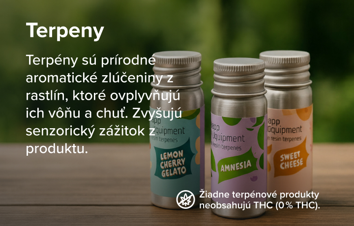 ❌ Žiadne terpénové produkty neobsahujú THC (0 % THC).